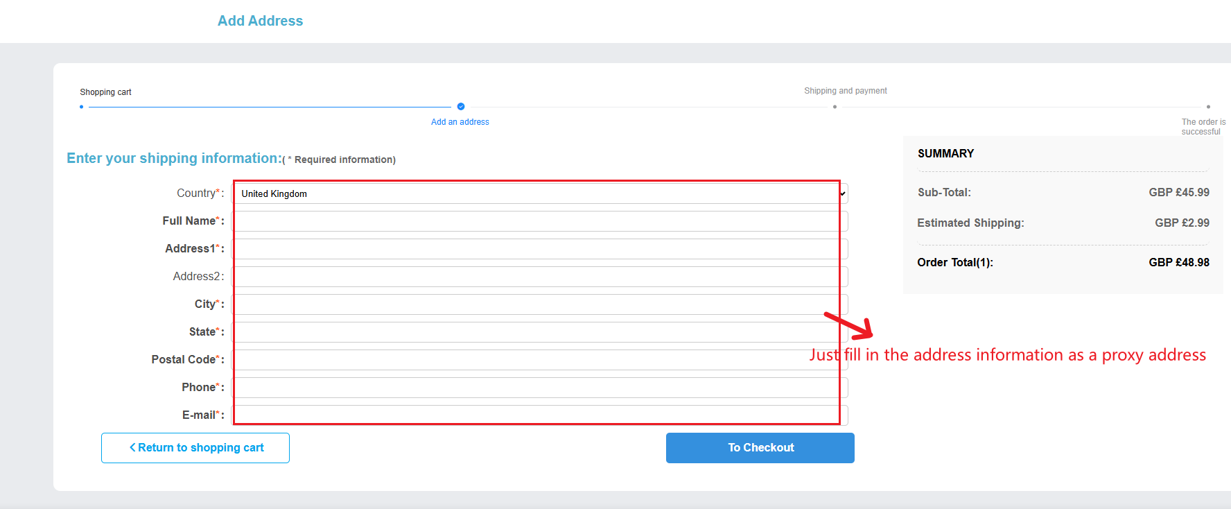 - 3 Next, you need to proceed further, fill in the information. If you have special requirements, please tell us in the order remarks, for example: This is a dropshipping order.